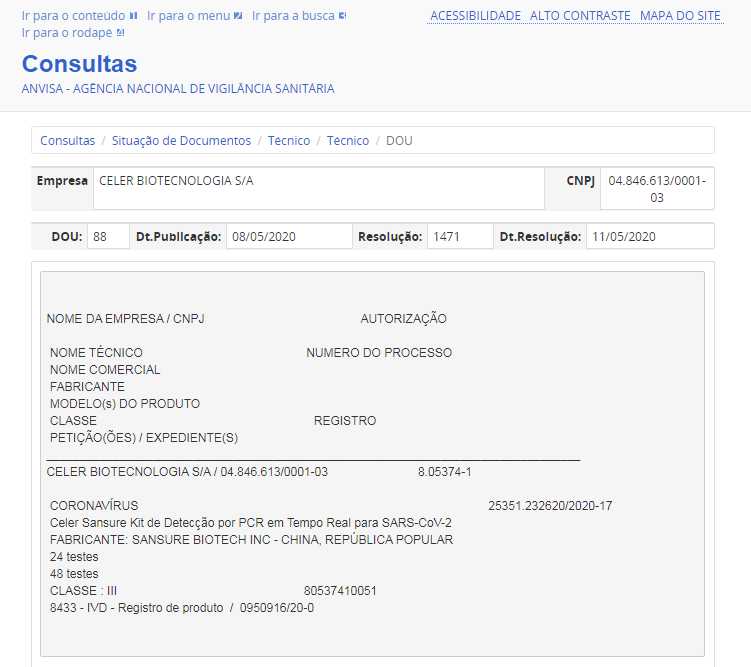 5月11日,KK体育生物新冠病毒核酸检测试剂盒获得巴西卫生监督管理局(ANVISA)注册证书。此前,该产品已相继获得中国国家药监局(NMPA)注册认证、欧盟CE认证、美国FDA紧急使用授权、新加坡卫生科学局临时授权等一系列权威认证。