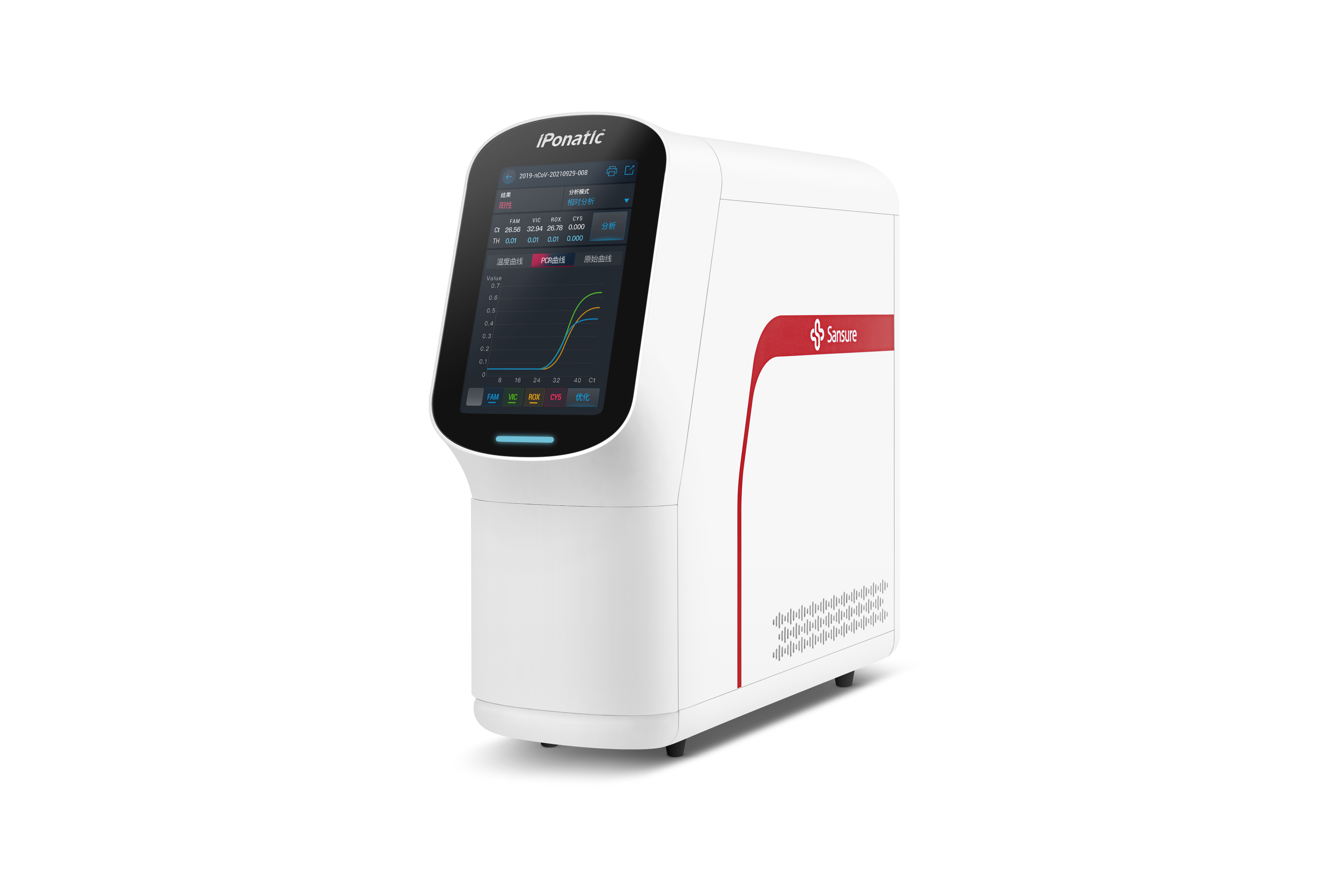 新一代iPonatic③核酸检测分析仪,采用核心技术芯片,全新“SanUI”交互系统,高清智能触控屏,检测结果所见即所得。自动一体化快速检测流程,样本进-结果出,最快8分钟出具检测结果。创造测流水线运行模式,通量自由选择,样本随到随检。丰富的试剂菜性的无线组合技术,超大智慧屏显示模块,检单,无限的项目延展性,满足您对不同病原体的检测需求。广泛适用于中心实验室、急诊/发热门诊、基层医疗机构、疾控中心、海关、出入境检验检疫等应用场景。真正开启分子诊断“数智”时代。